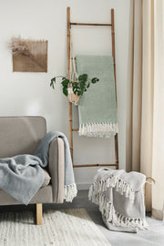 Tagesdecke mit Fransen Grün-Weiß gestreift